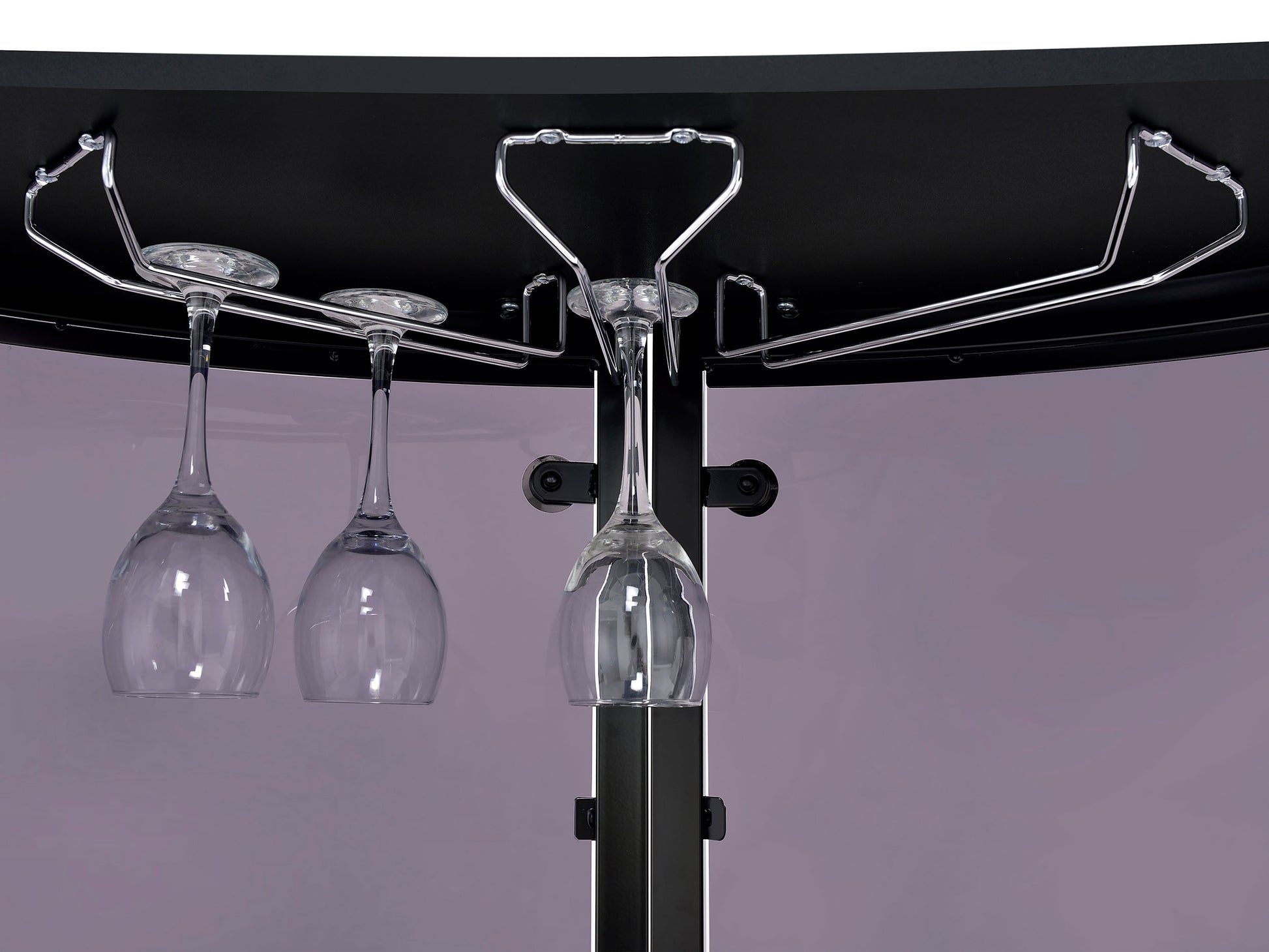 Beautifully crafted with high-quality acrylic panels and a clear glass top, this contemporary bar unit lets you entertain in style. Its smooth, curved silhouette gives it an elegant appearance. With a spacious storage area, it leaves plenty of room for all of your bartending needs. A convenient stemware rack completes its convenient appeal. Whether you're hosting a swanky soiree or a casual cocktail hour, this bar unit is ideal for any occasion.