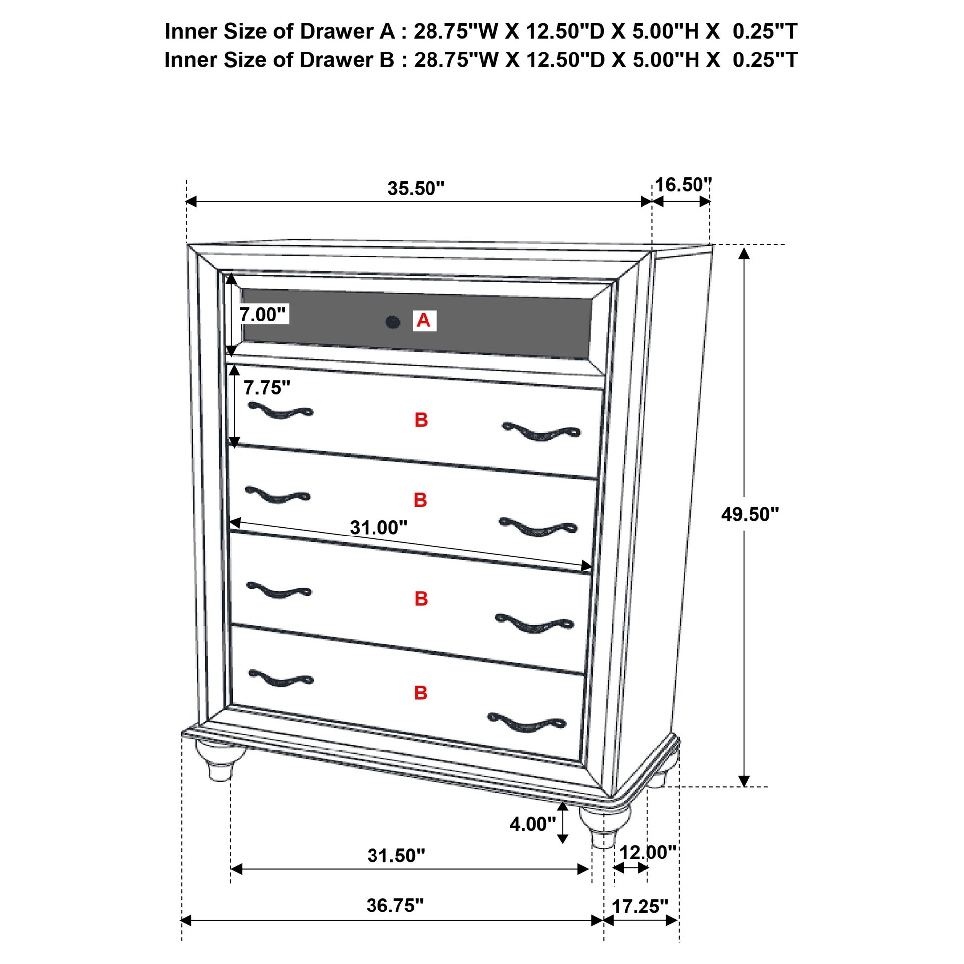 • Drawer Weight Limit: 45 Lbs