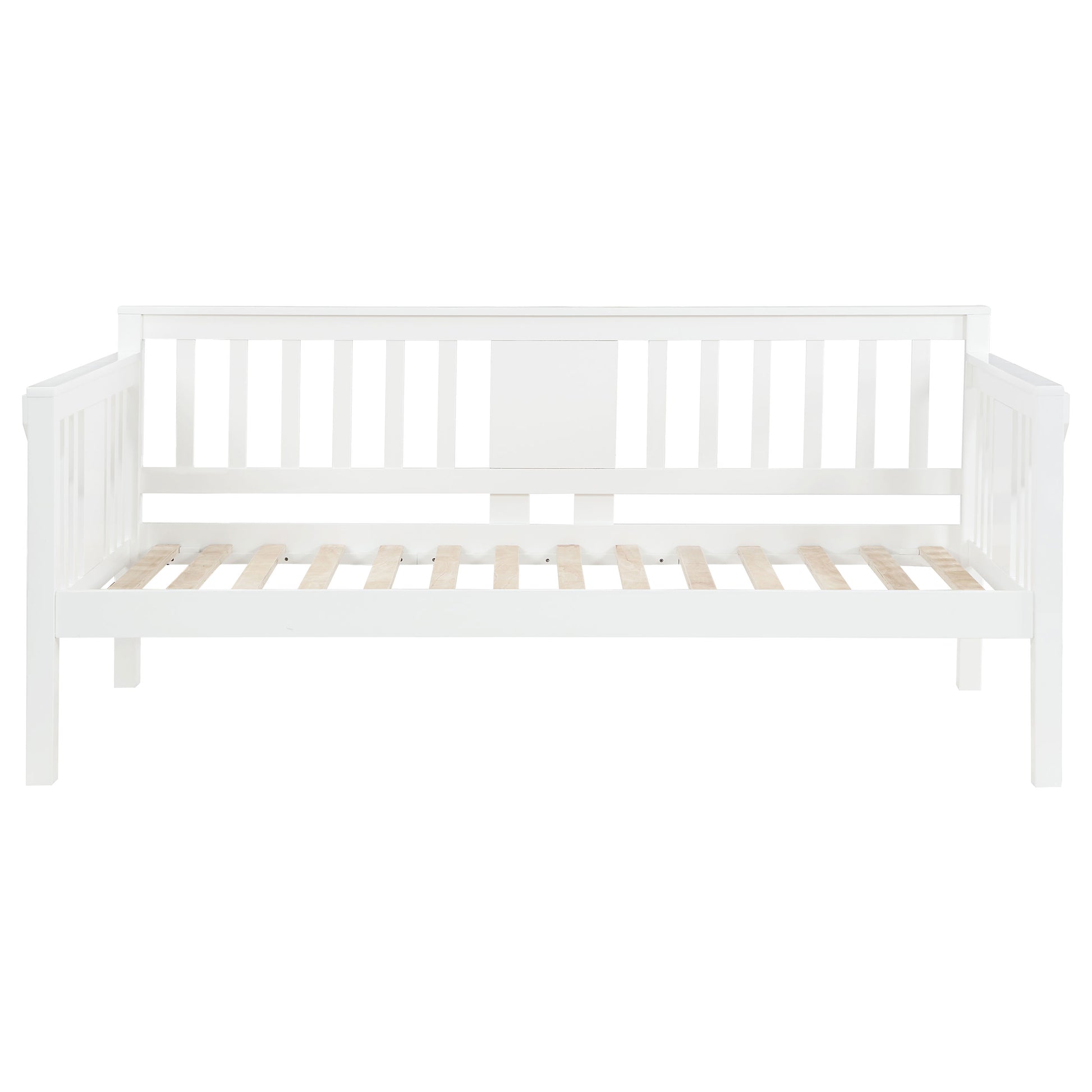 • Twin daybed with slatted back and side panels for versatile lounging or sleep