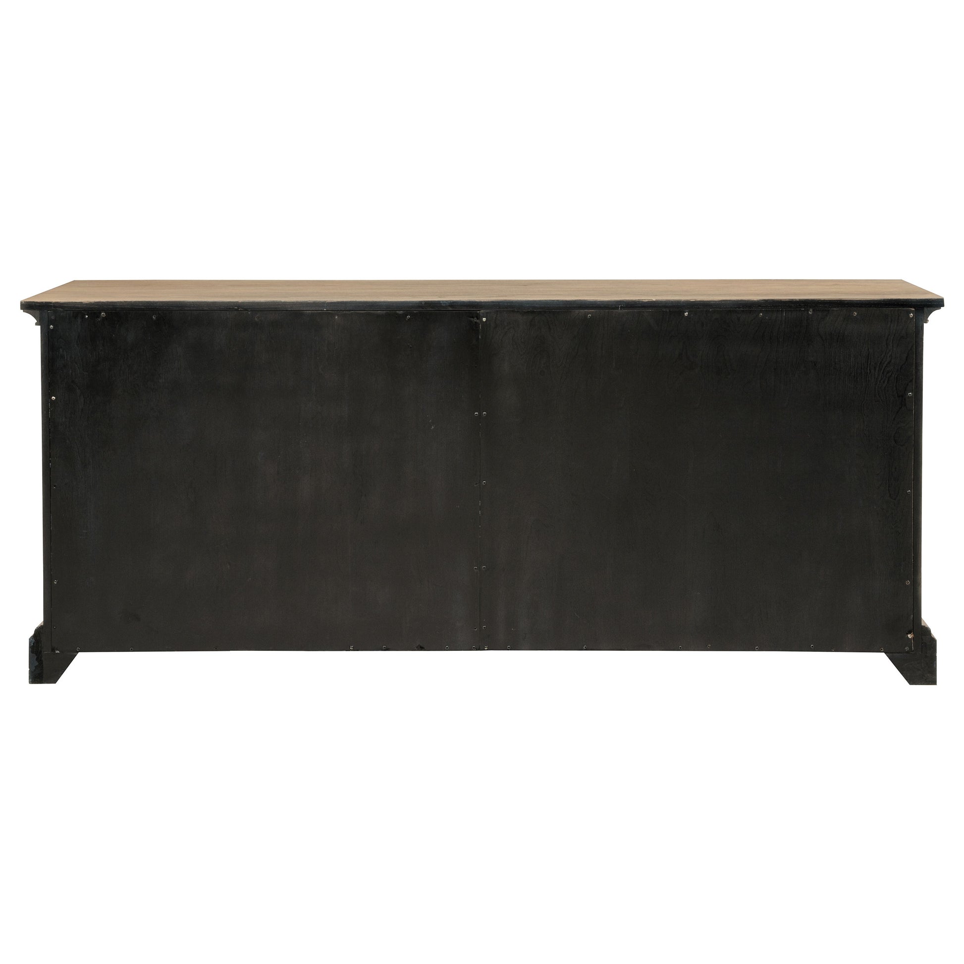 Combining beauty with purpose, this four-door dining sideboard delivers generous interior storage wrapped in timeless style. Behind each antique mirrored door are adjustable shelves, ideal for keeping serveware, linens, or entertaining essentials neatly organized. The barley brown finish brings warmth and texture to its classic silhouette, while matte black hardware adds contrast and sophistication. Crafted from solid rubberwood, engineered wood, and ash veneer, this piece embodies enduring elegance and practicality.