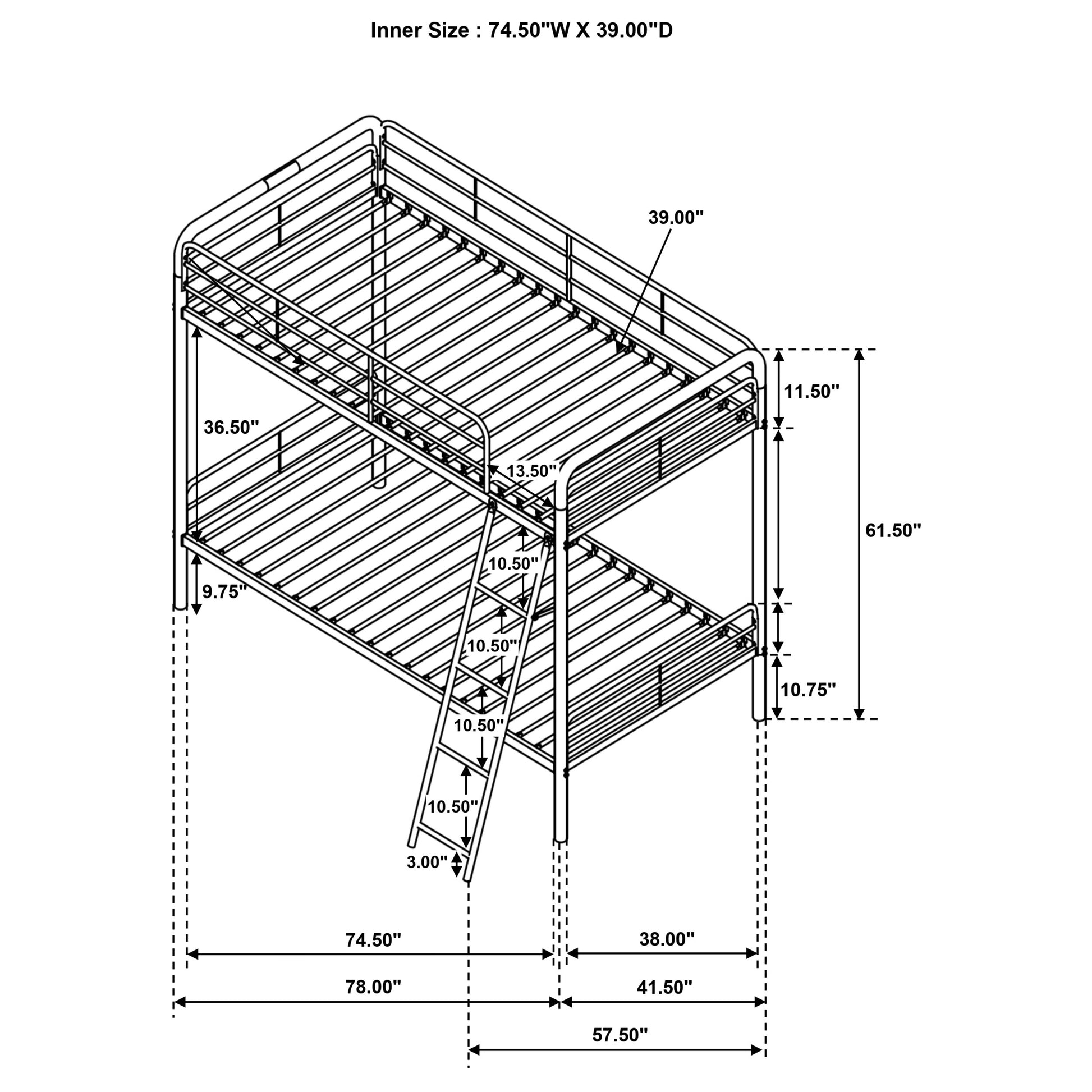 Carson Metal Twin Over Twin Bunk Bed Glossy Black