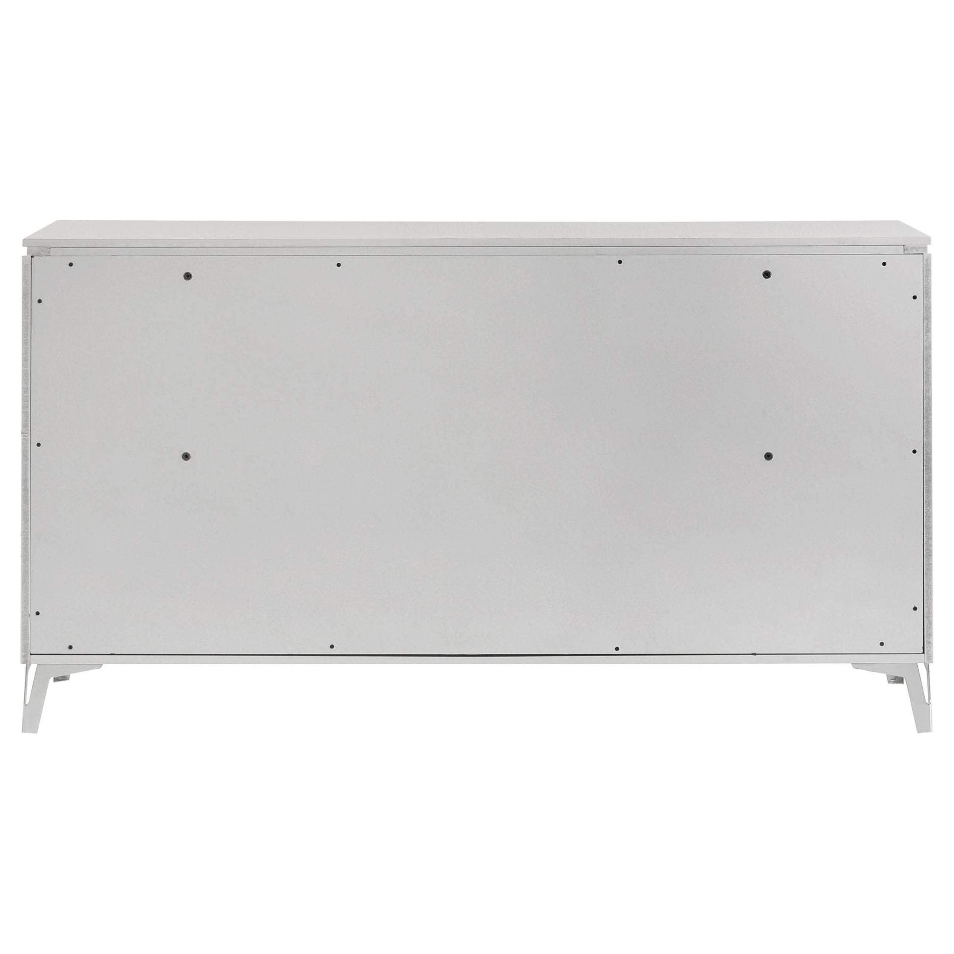 • Six-drawer dresser in white high gloss finish with geometric ribbed drawer front textures