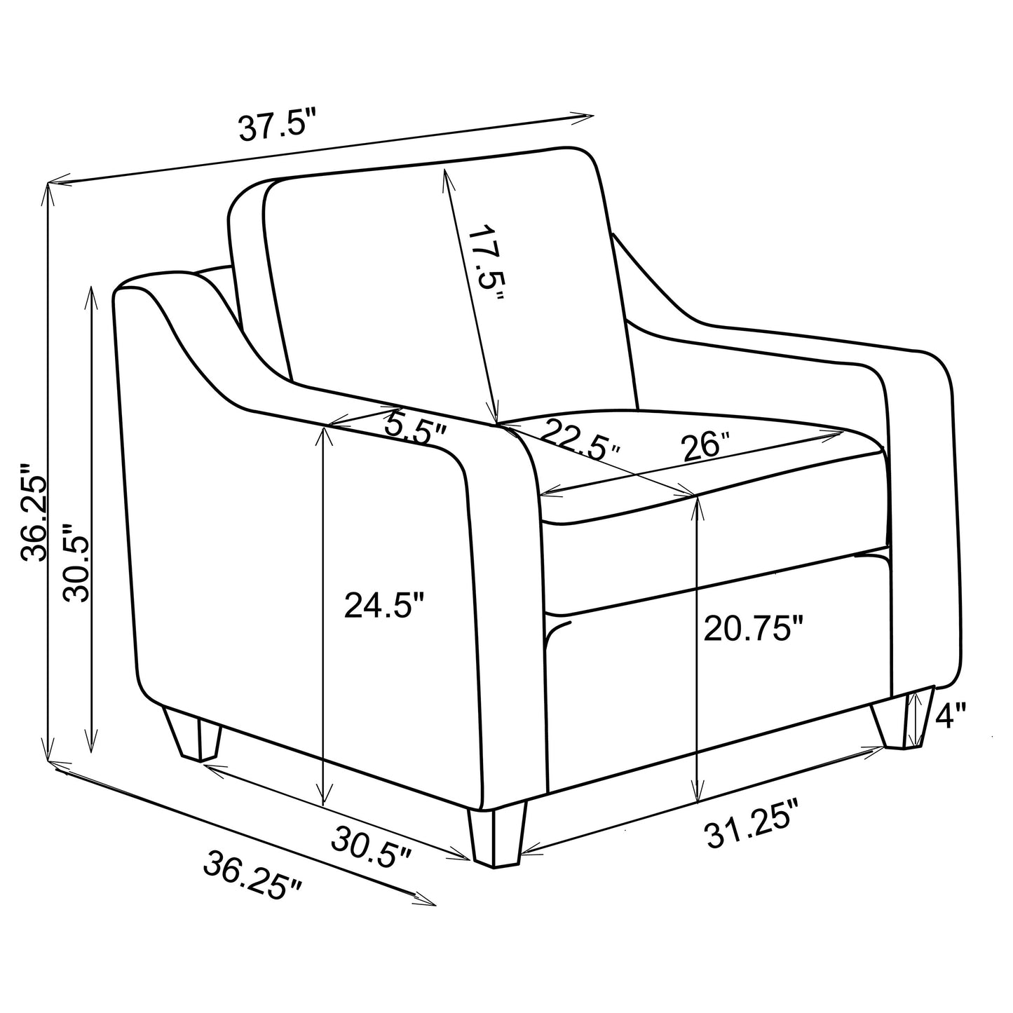 Add understated elegance to your seating area with this upholstered accent chair. Wrapped in soft beige chenille, it brings a light, airy feel that complements any décor. The sloped track arms and dark brown tapered wooden legs create a refined silhouette that balances comfort and sophistication. A boxed seat and back cushion with welt trim highlight its tailored design. Built with a sturdy wooden frame and plush foam cushioning, this chair offers timeless appeal and versatile style for modern or transitional interiors.