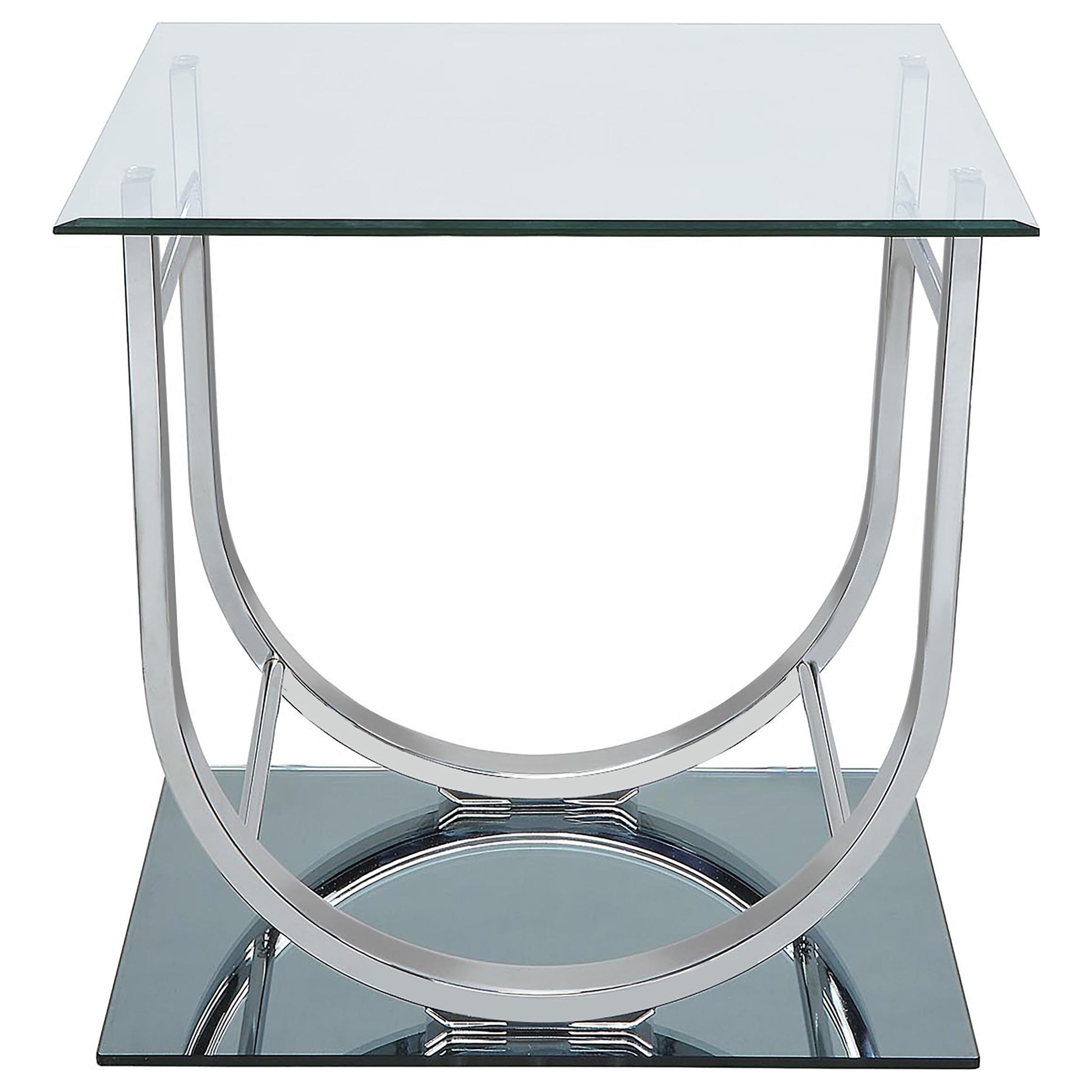 This modern coffee table set features a clear tempered glass top complemented by sleek mirrored bases, delivering a bold and sophisticated look. The curved frames are crafted from electroplated heavy gauge metal with a polished chrome finish, adding a touch of elegance and durability. Designed for contemporary living rooms, this set provides both visual appeal and functionality, making it a perfect centerpiece while ensuring long-lasting quality and reliable performance.