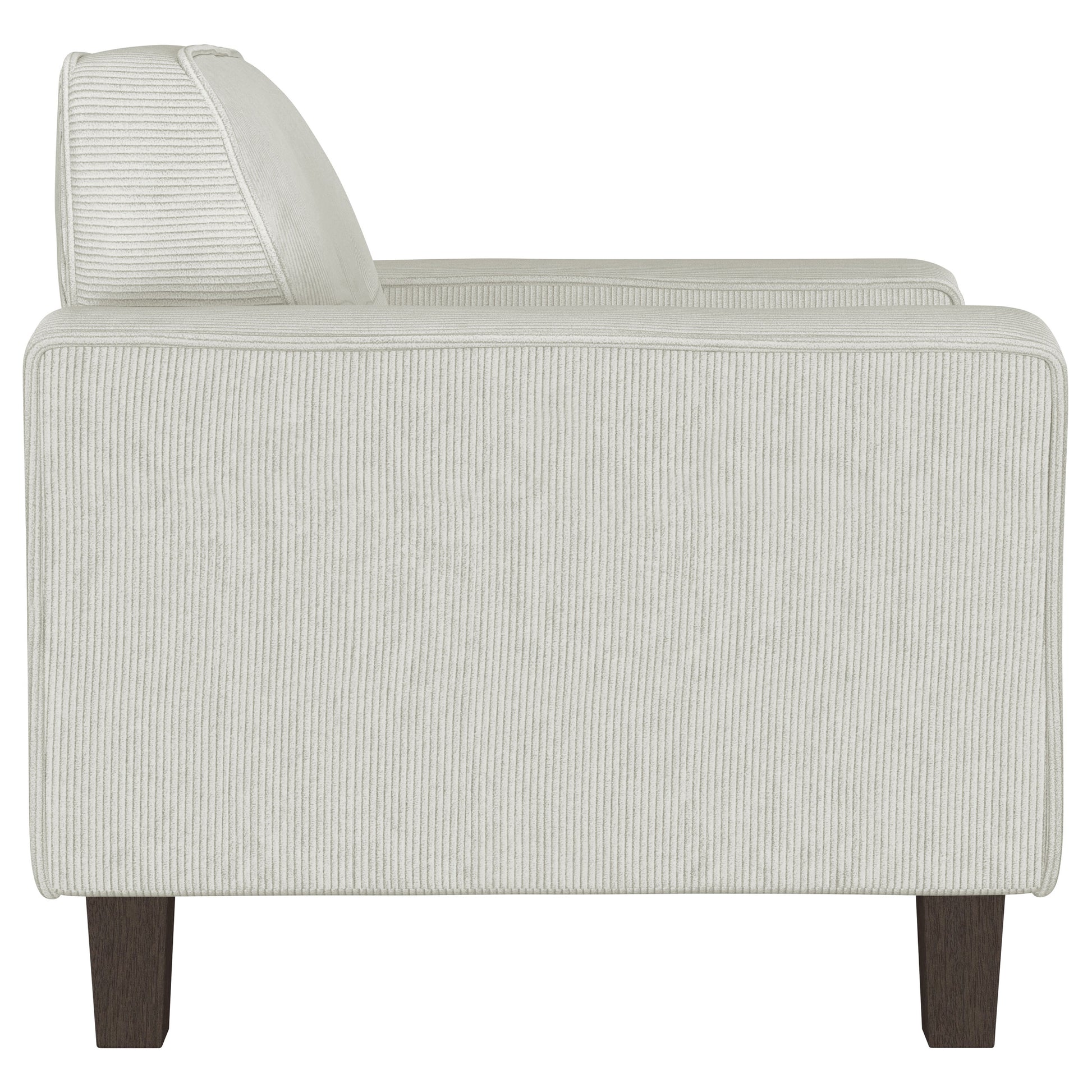 Tufted accents create the perfect dose of mid-century flair for a three-piece modern sofa set. Offering chic, comfortable seating in your living room, the set features soft, neutral upholstery over foam cushions, providing excellent comfort. A stylish silhouette is established with a wide track arms and tapered legs that provide lift for an airy touch. Seating features sinuous spring decking for wonderfully supportive relaxation. Place the sofa, loveseat and armchair together or split them amongst seating areas for a cohesive look and feel.