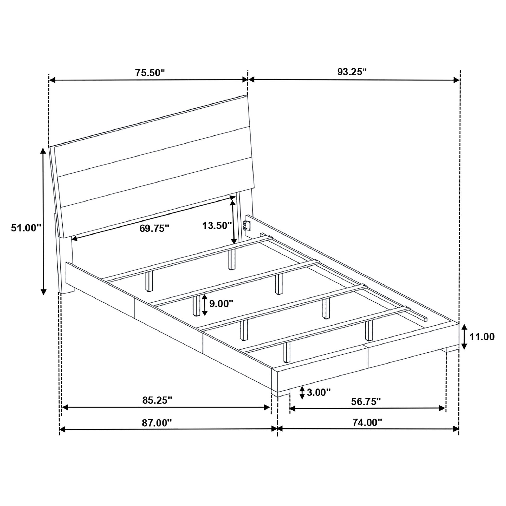 • Bed frame upholstered in smooth, durable, and soft faux leather for comfort
