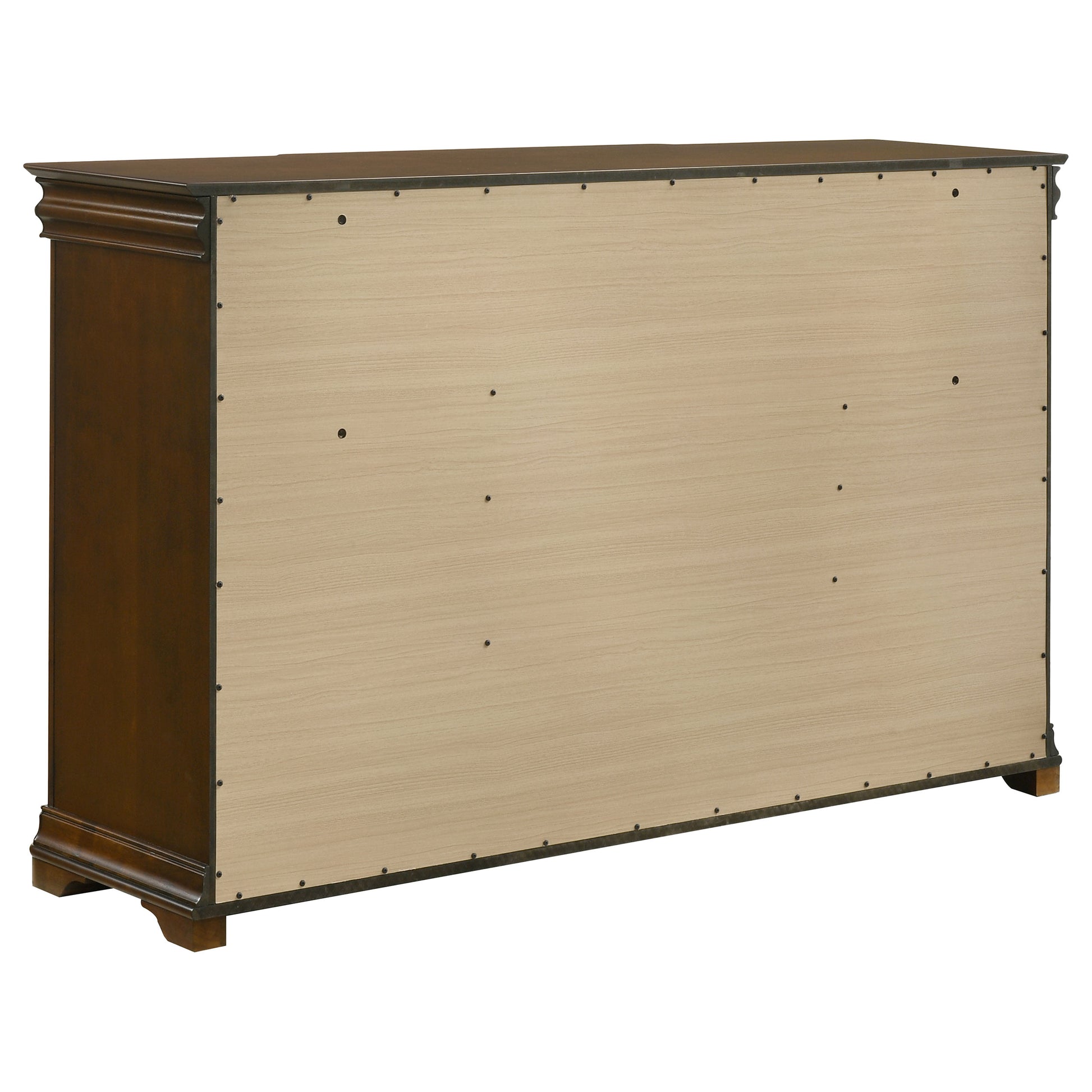 • Dresser includes nine main drawers with crown molding and classic shaping