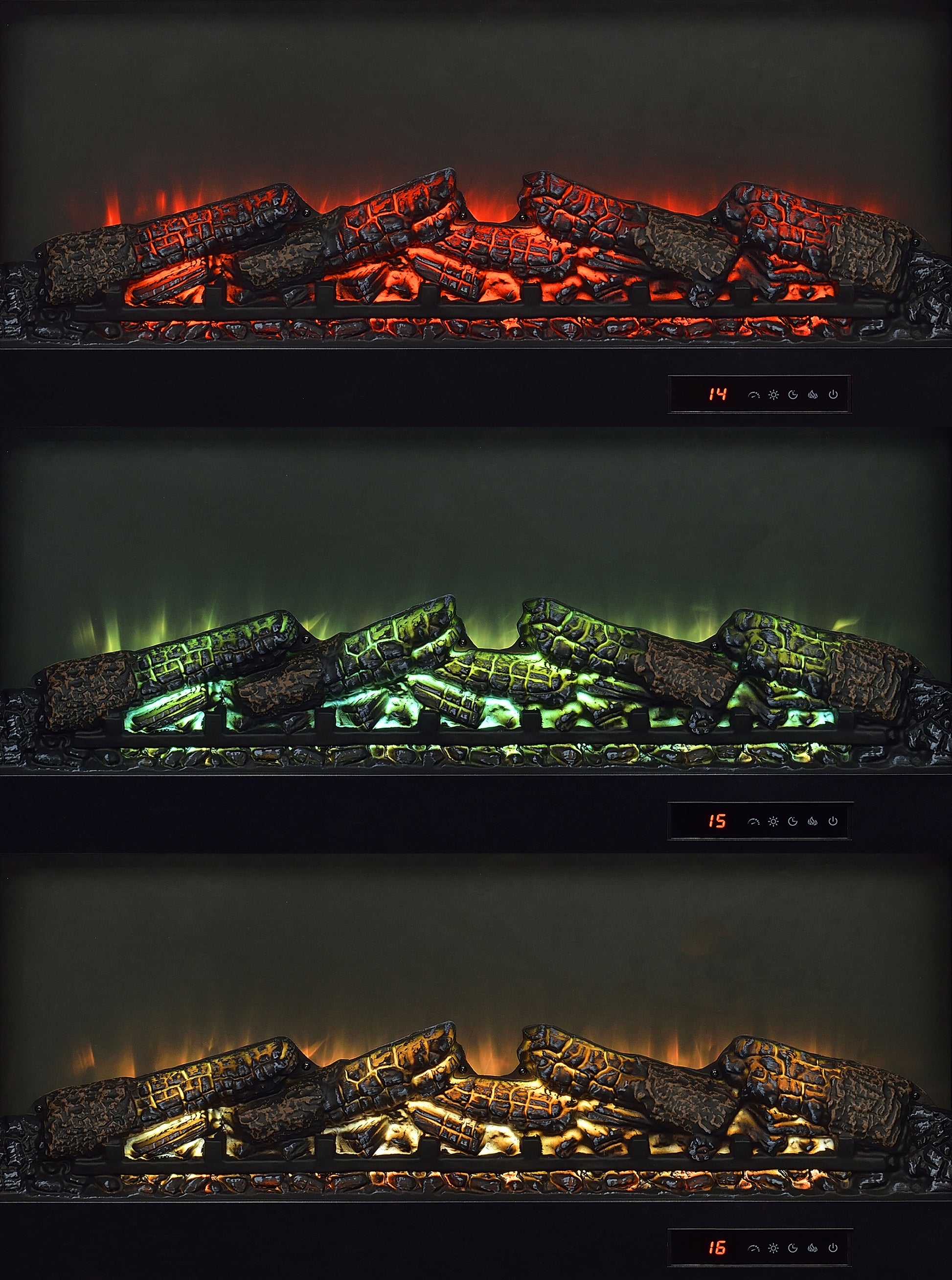 • Realistic burning ember display without heat functionality delivers visual warmth and ambiance