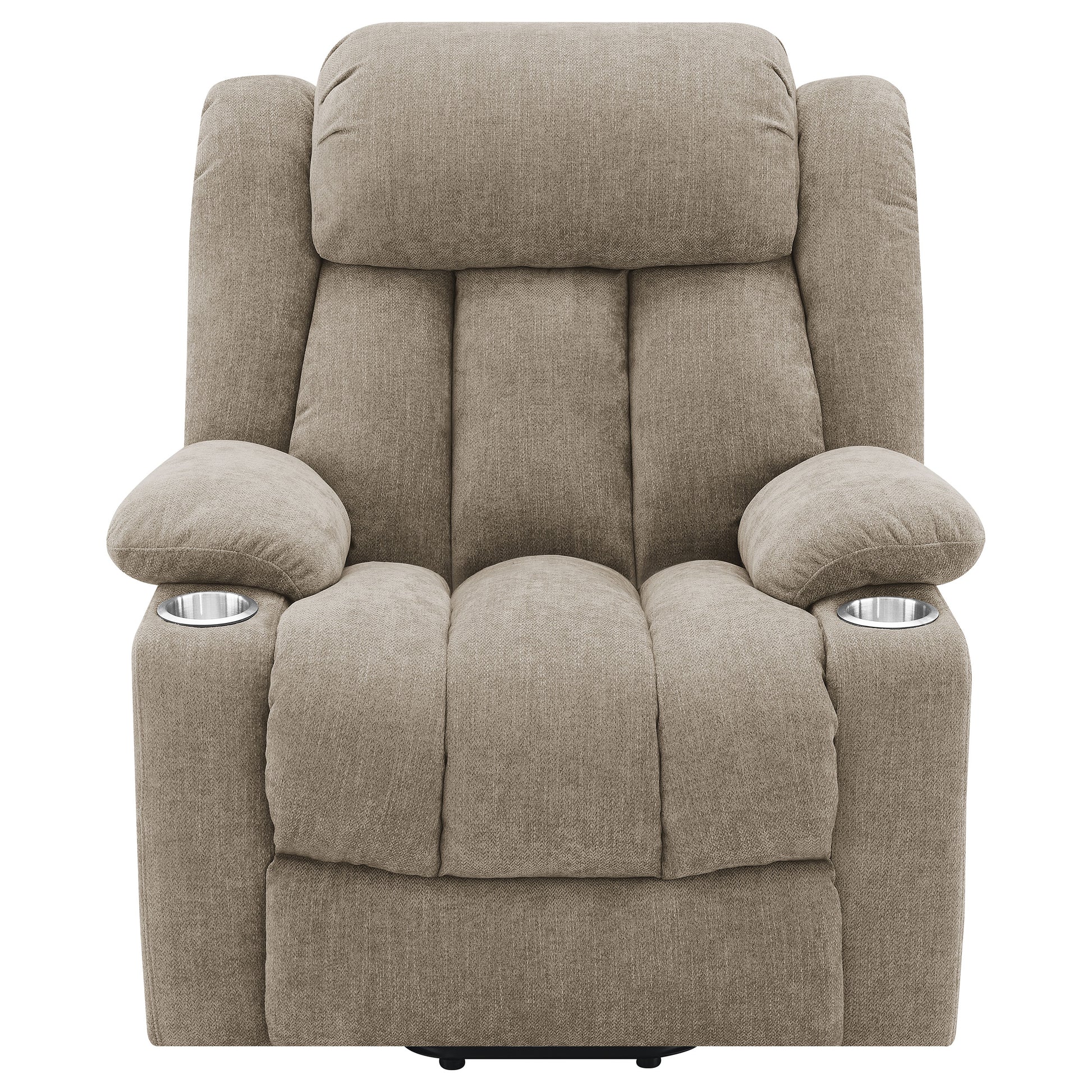 • A modern power lift recliner includes cupholders and will assist in relaxation