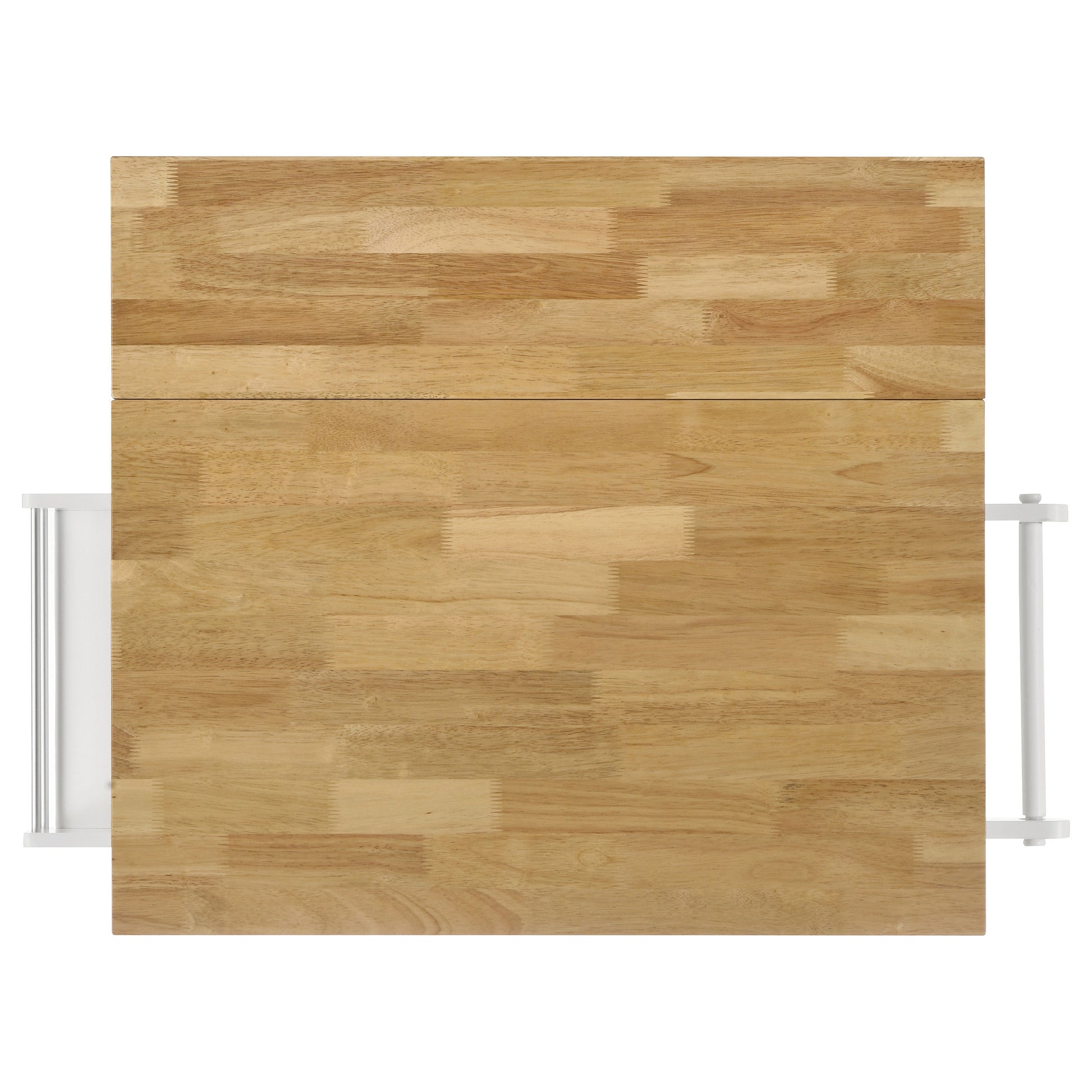 Make your kitchen as functional and fashionable as possible. With a bright modern farmhouse motif, this kitchen cart organizes tasks and storage options into one central unit. Solid rubberwood offers a stylish composition that shows off a butcher block work surface. Fresh white and natural brown finish deliver decor versatility. Keep tasks simple with a towel rack, spice rack, a hidden cabinet for trash, and casters for portability.
