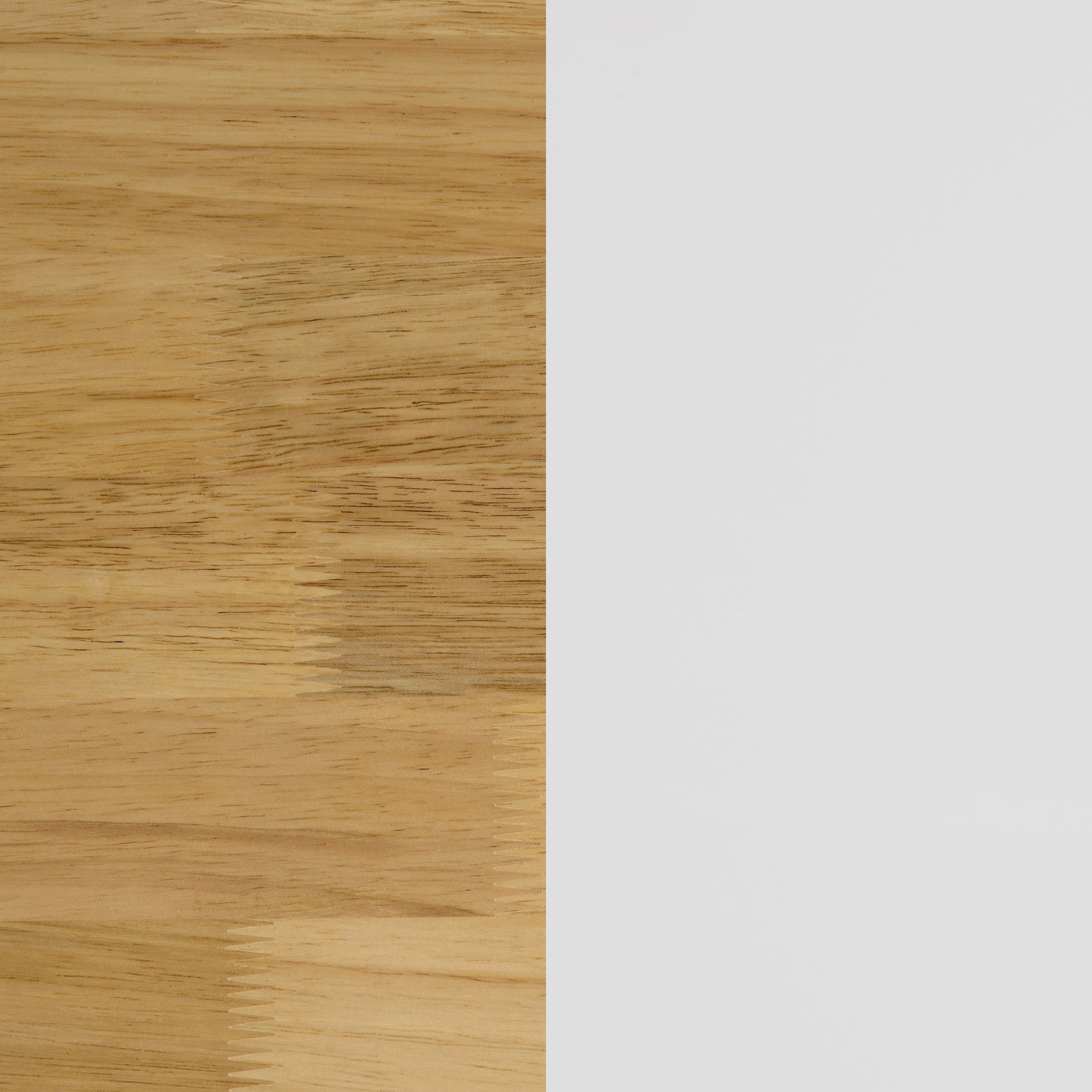 • Natural brown top pairs with white frame and door fronts for farmhouse-style contrast