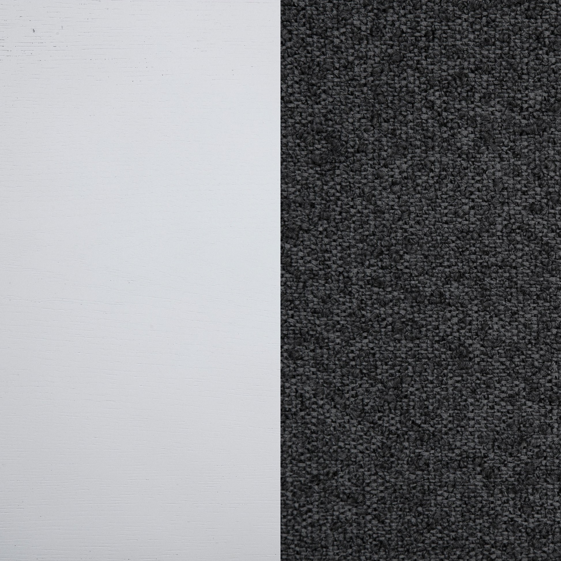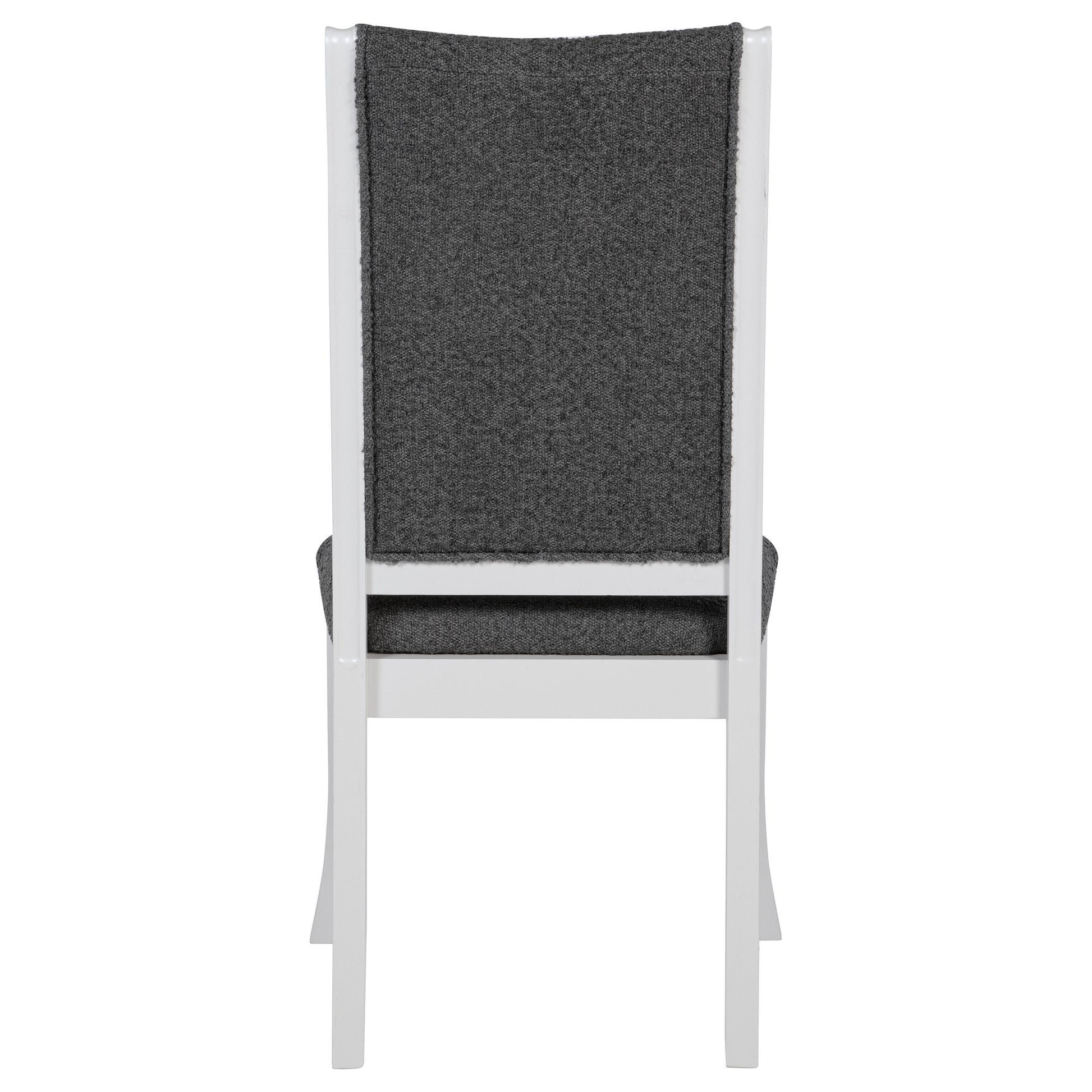 Dimensional grey upholstery creates engaging contrast and depth for this set of two modern dining chairs. Each boasts a tall, refined silhouette that's armless to create a smooth, streamlined silhouette. Cushions are padded with foam and covered in dark grey upholstery. A pearl white finish adds crisp, clean character, delivering a look that works beautifully in a variety of spaces and decor styles. Chairs are complete with flared front legs and squared edges that encourage a clean, precise look.