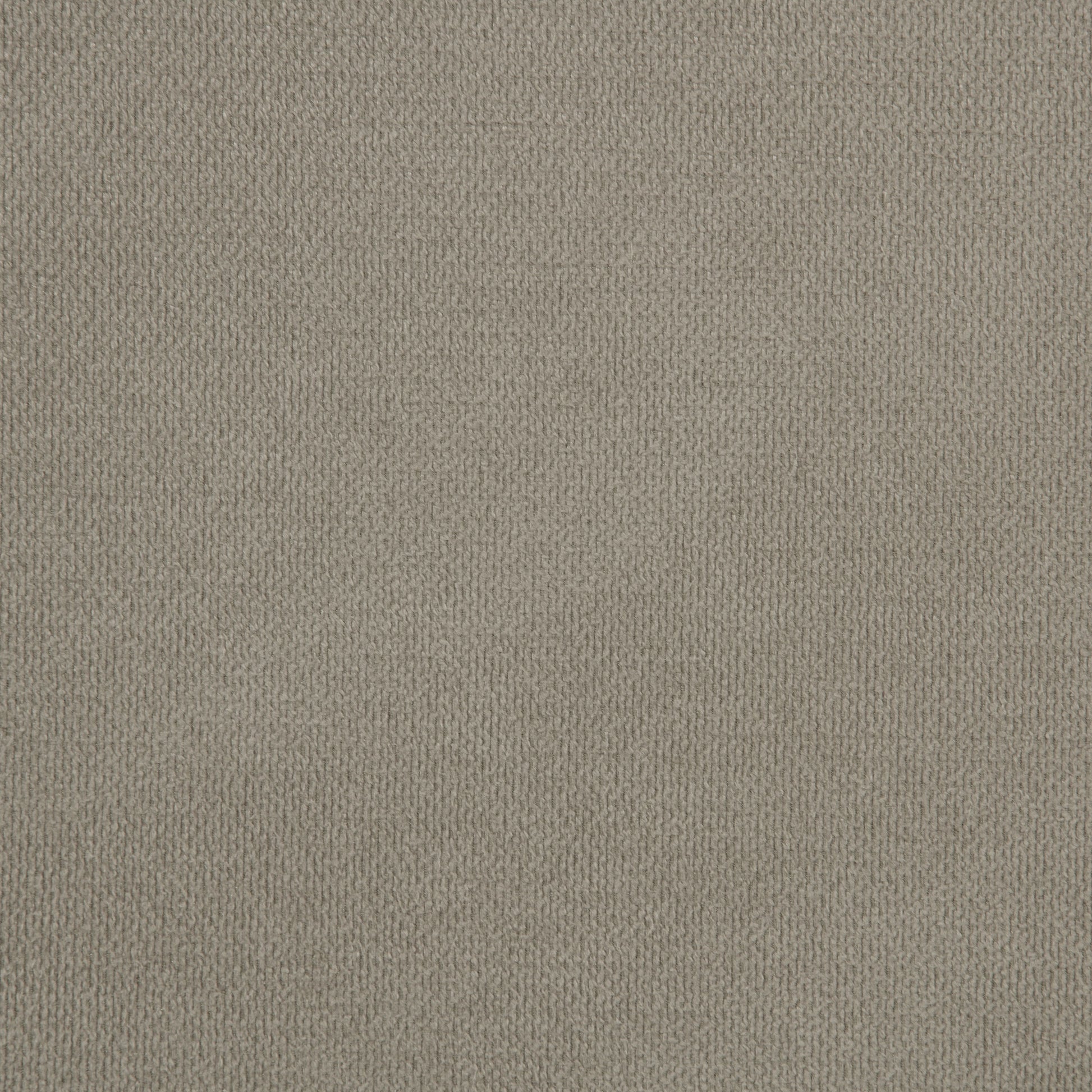 • Upholstered headboard features rounded corners and padding under taupe fabric