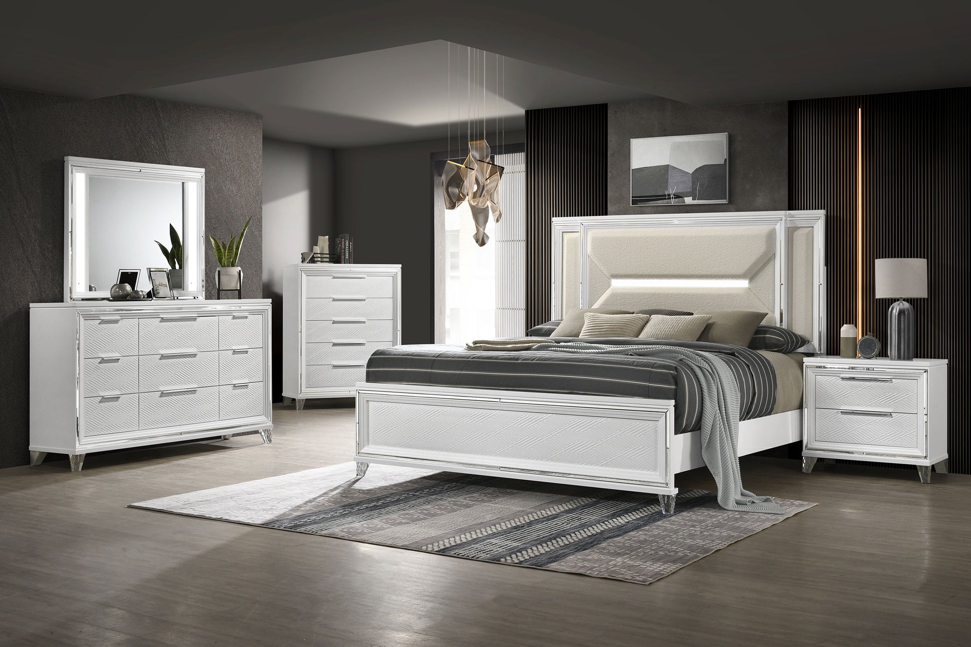 Marmore 64-inch Eastern King Panel Bed LED Headboard White