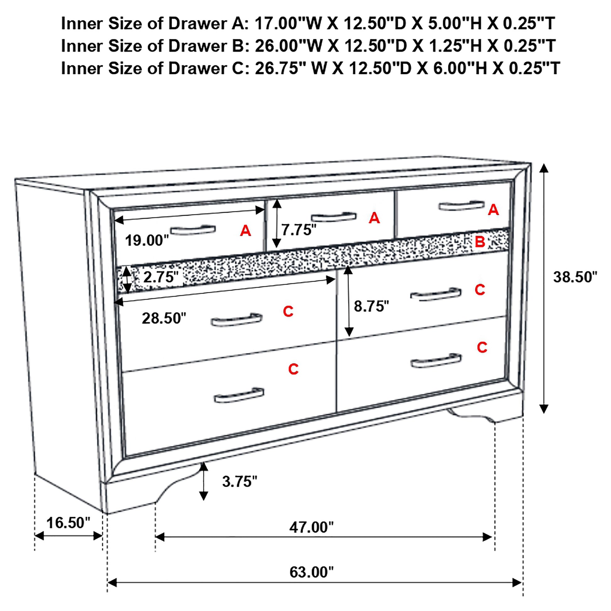 • Crystal drawer pulls and glitter accents enhance the glam aesthetic