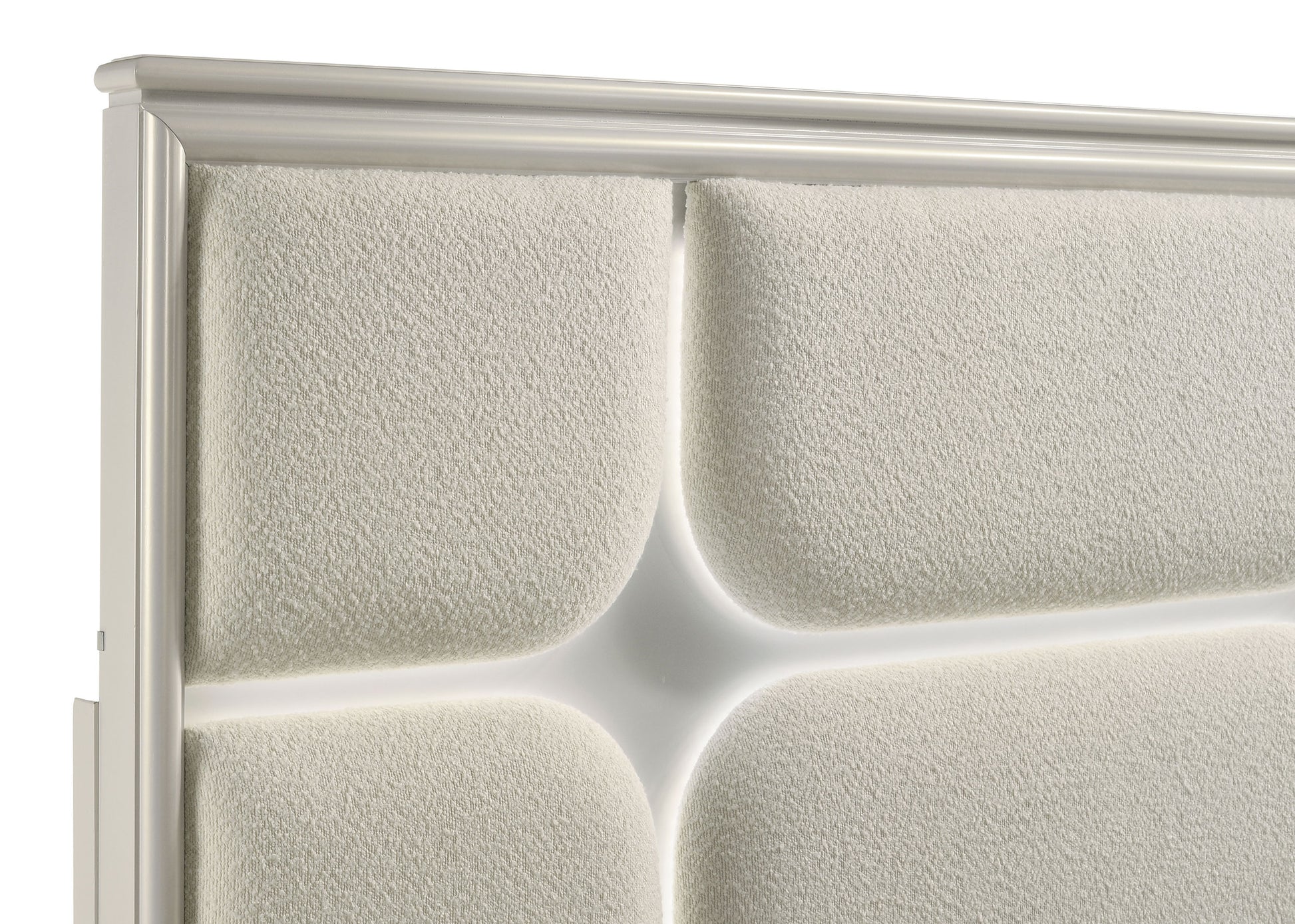 • Modern five-piece eastern king bedroom set in pearl white finish