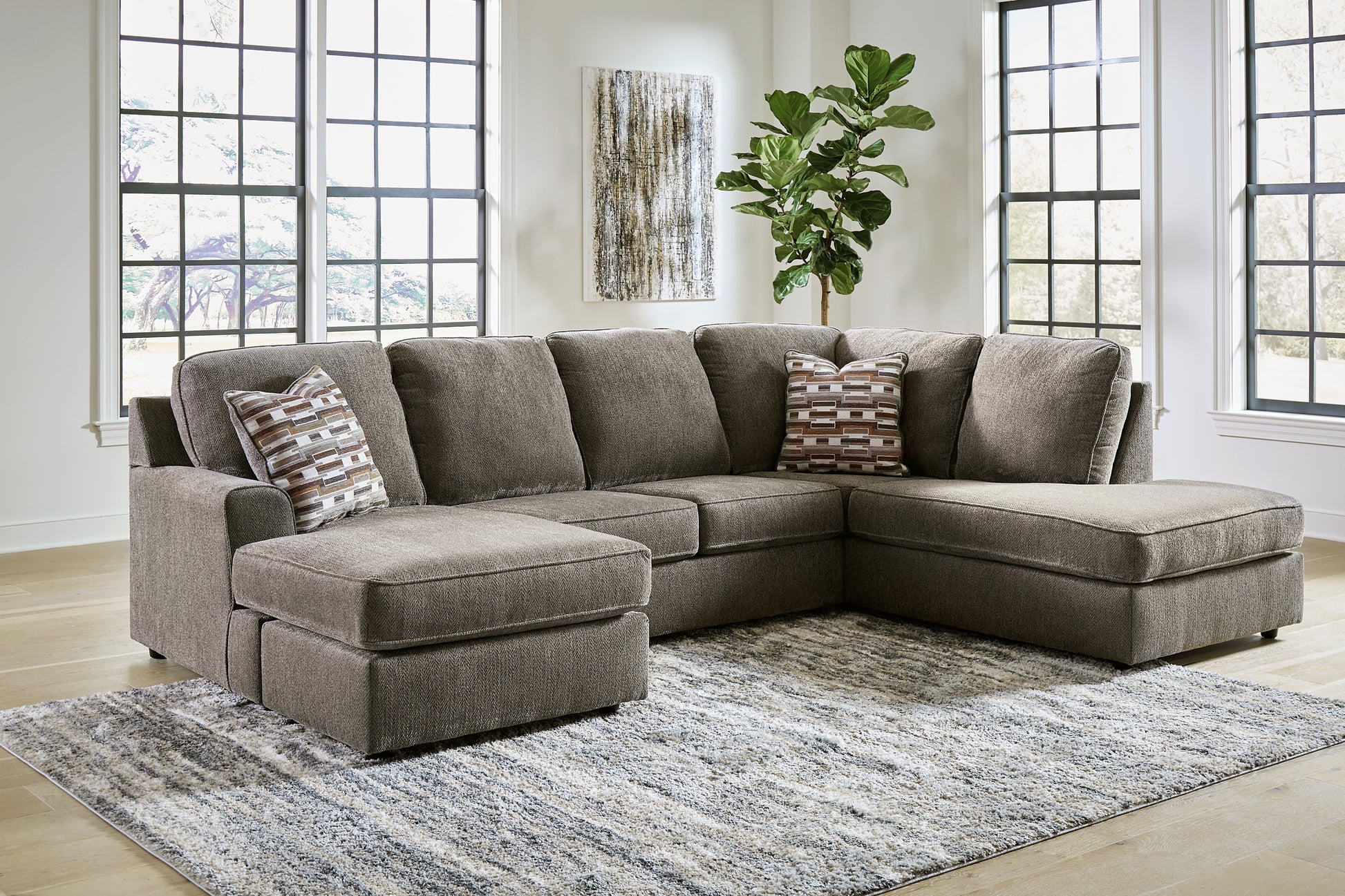 | Details | Includes left-arm facing sofa chaise and right-arm facing corner chaise, Corner-blocked frame, Attached back and loose seat cushions, High-quality foam cushions wrapped in poly fiber, Polyester upholstery, Accent pillows included, Pillows with soft polyfill, Platform foundation system resists sagging 3x better than spring system after 20,000 testing cycles by providing more even support, Smooth platform foundation maintains tight, wrinkle-free look without dips or sags that can occur over time with sinuous spring foundations | |