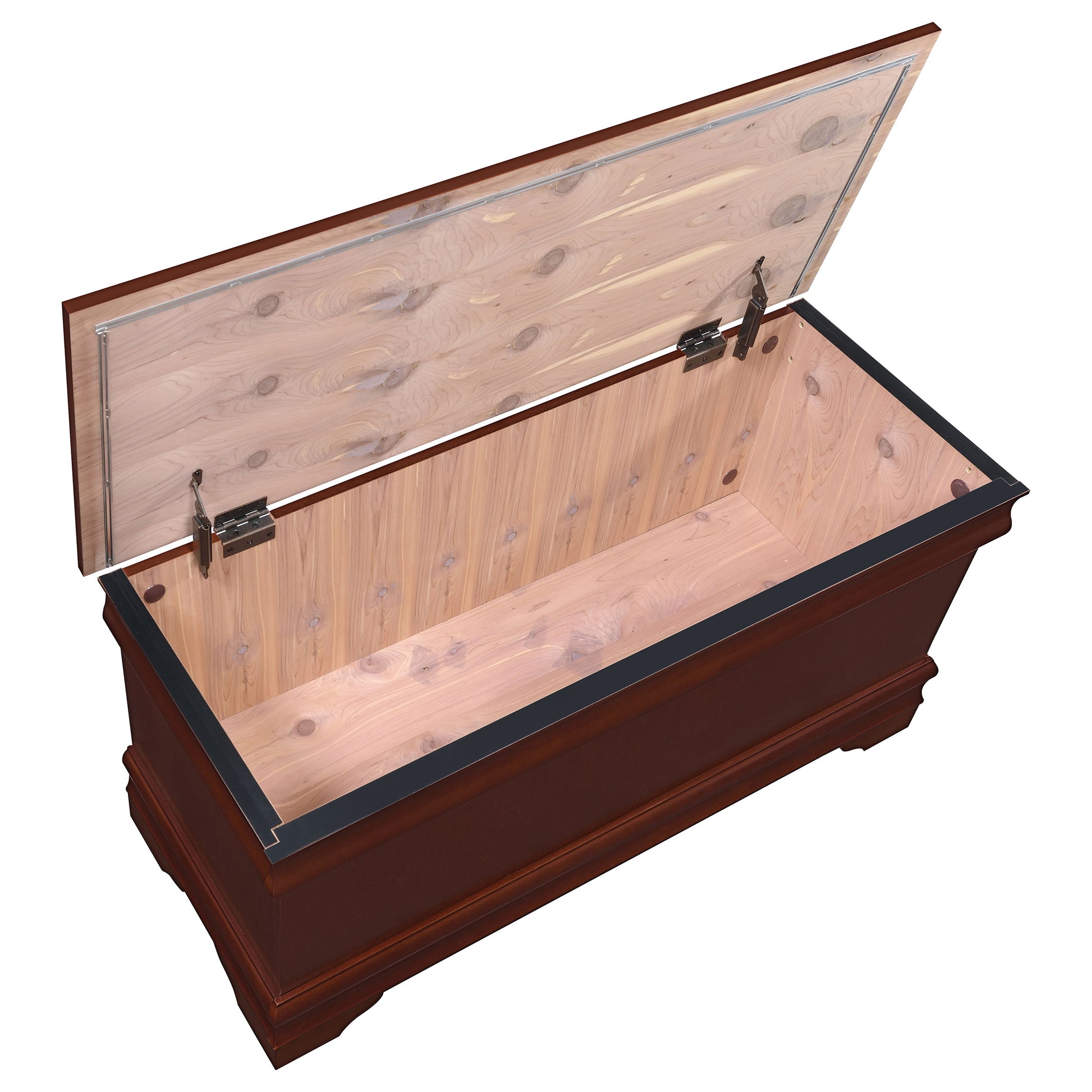 • Cedar chest with classic rectangular shape and traditional base molding for elegant appeal