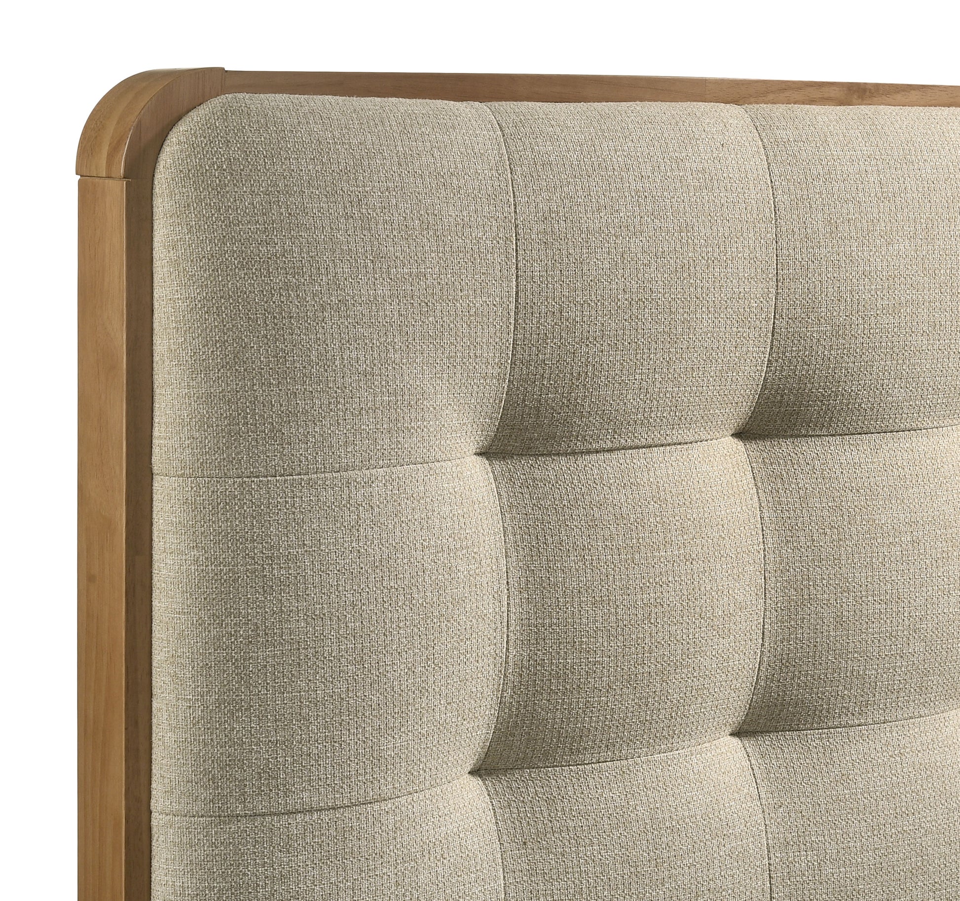 Bring countryside charm to your bedroom with this mid-century-inspired bed, expertly crafted from rubberwood, engineered wood, and ash veneer for durability and style. The upholstered headboard features thick padding and square tufting for a touch of elegance and comfort, while the sleek, low-profile footboard completes the refined silhouette. Rounded corners and tapered legs highlight the retro-modern design, and its elevated frame adds a clean, airy look. Perfect for creating a serene and stylish bedroom retreat.