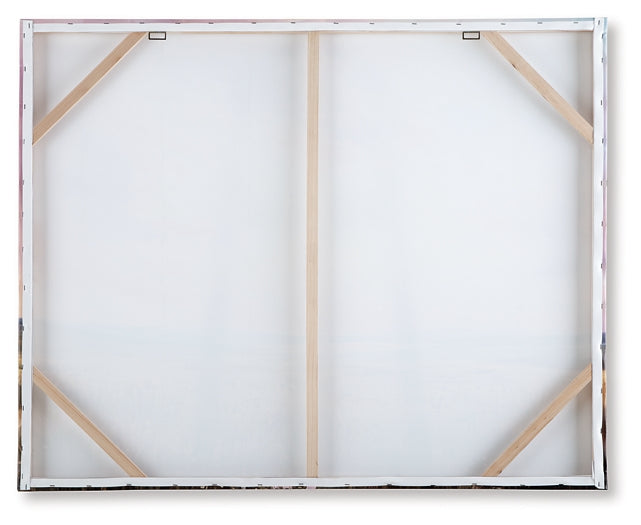Staggerlingly beautiful. Depicting a luminous landscape, this wall art captures a spectacular sky in soothing shades of pink, blue and yellow as sunlight beams on a field of florals. Hand painted embellishments make the canvas a gorgeous addition to an office, bedroom or above an entryway table.