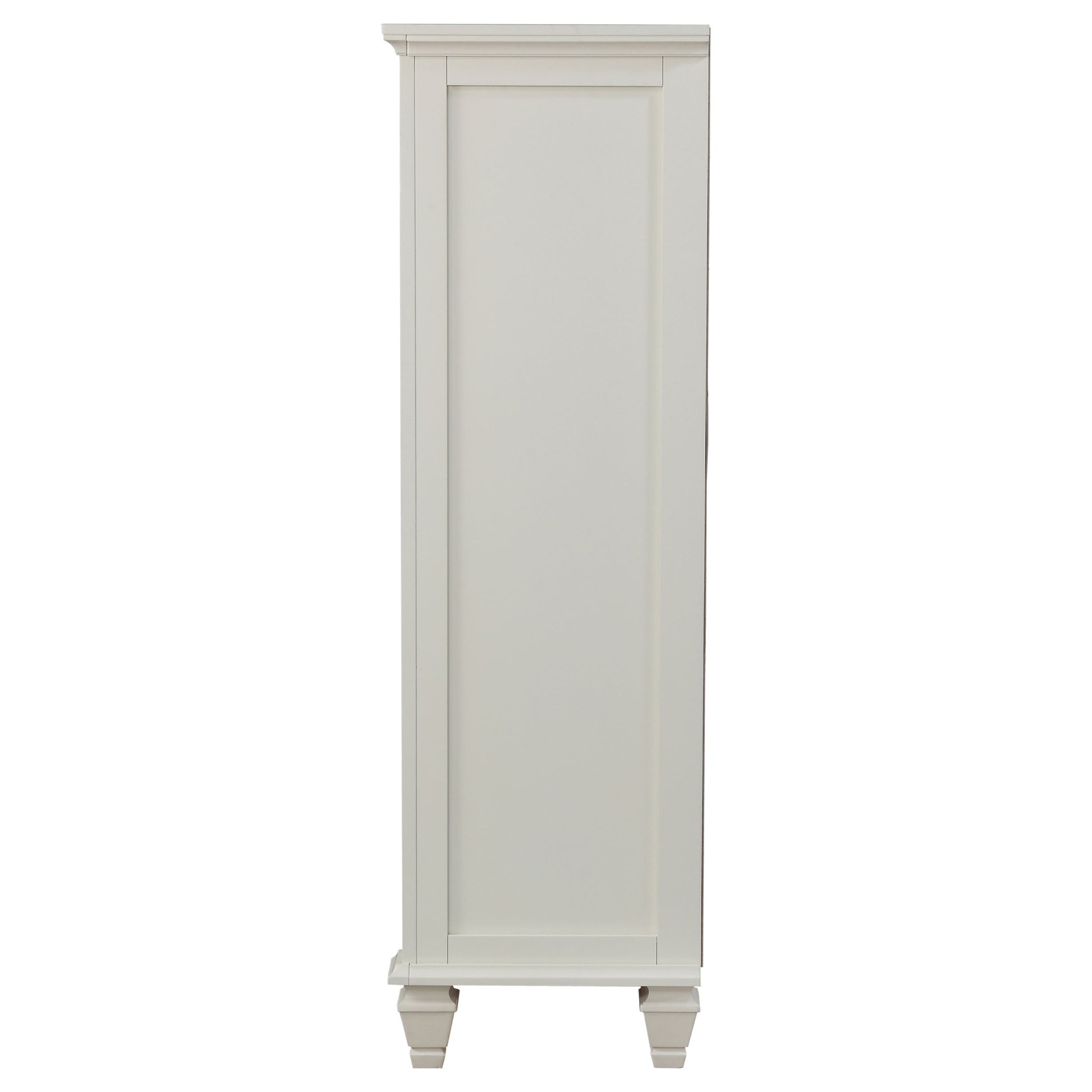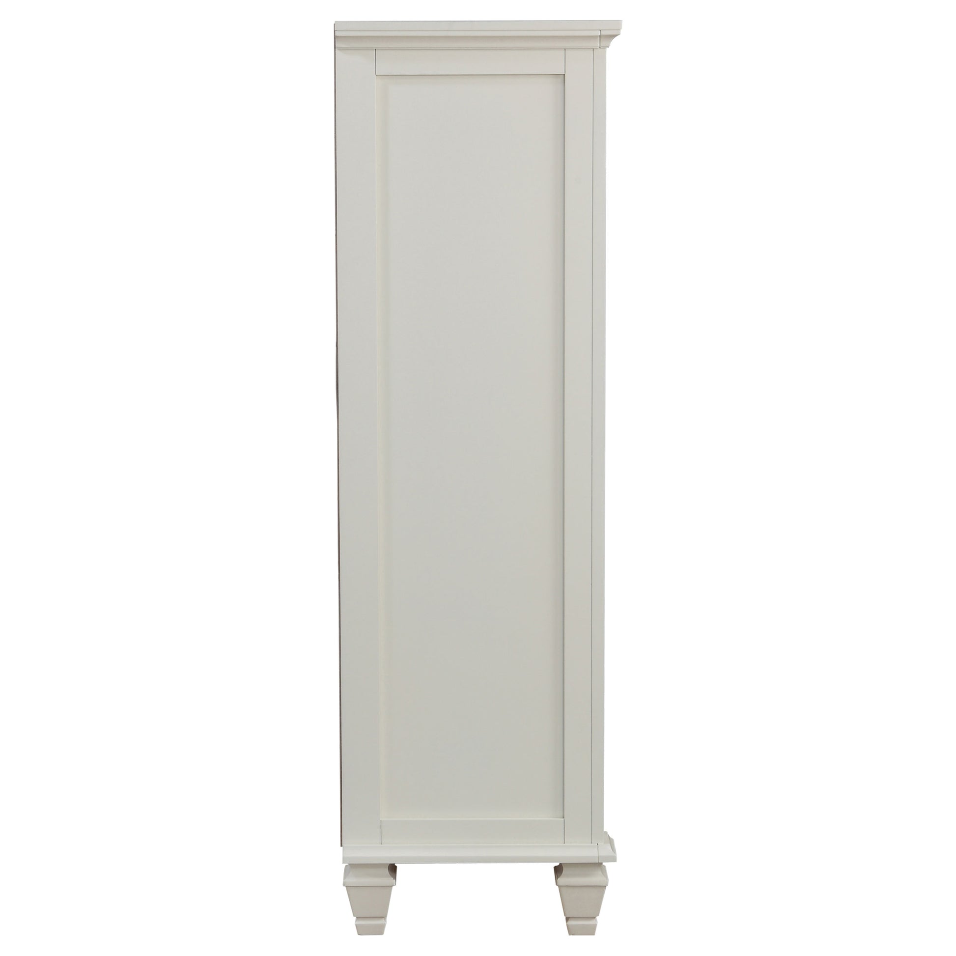 Add refined storage to your bedroom with this versatile door chest, offering both drawers and shelving to organize your essentials. With six spacious drawers and a cabinet door that opens to reveal an additional two drawers with shelving, this chest provides the perfect combination of concealed and open storage. The felt-lined top drawer is ideal for protecting delicate items, while the brushed nickel hardware adds a touch of modern elegance. Built from solid hardwood and engineered wood, this chest is finished in a neutral color, making it both durable and timeless in design. Whether you need extra space for clothing, linens, or other bedroom items, this door chest blends practicality with classic charm.