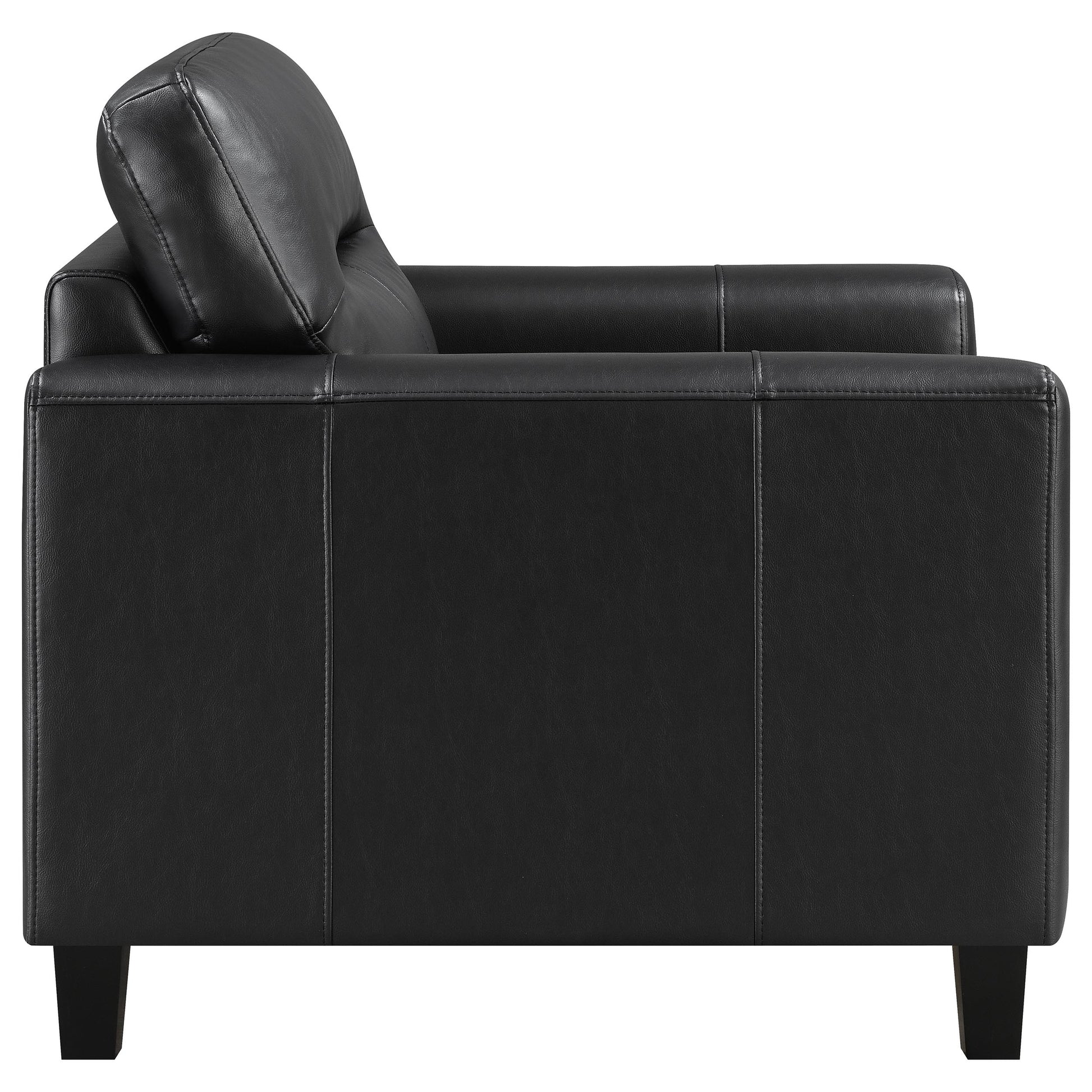 • Black leatherette upholstery defines each piece with soft matte uniformity
