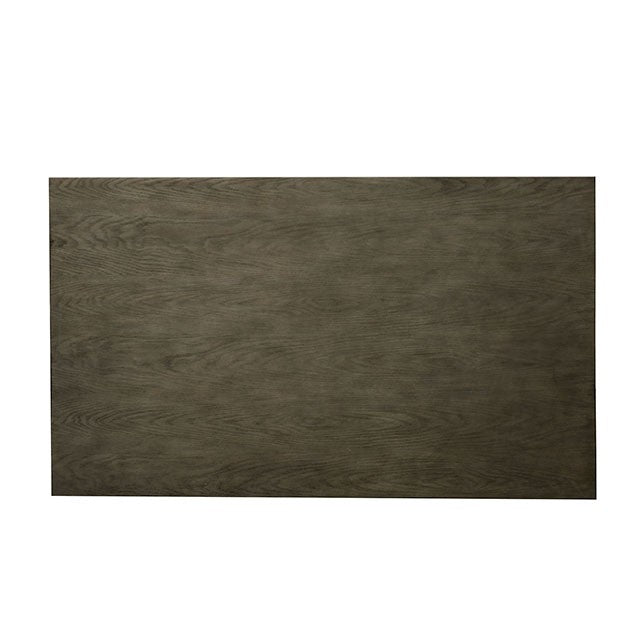 The weathered gray finish of this transitional style dining set gives a rustic vibe to a contemporary collection for a look with personality and more! The slat back chairs are upholstered in an off white fabric and filled with foam for a comfortable design the whole family will love .