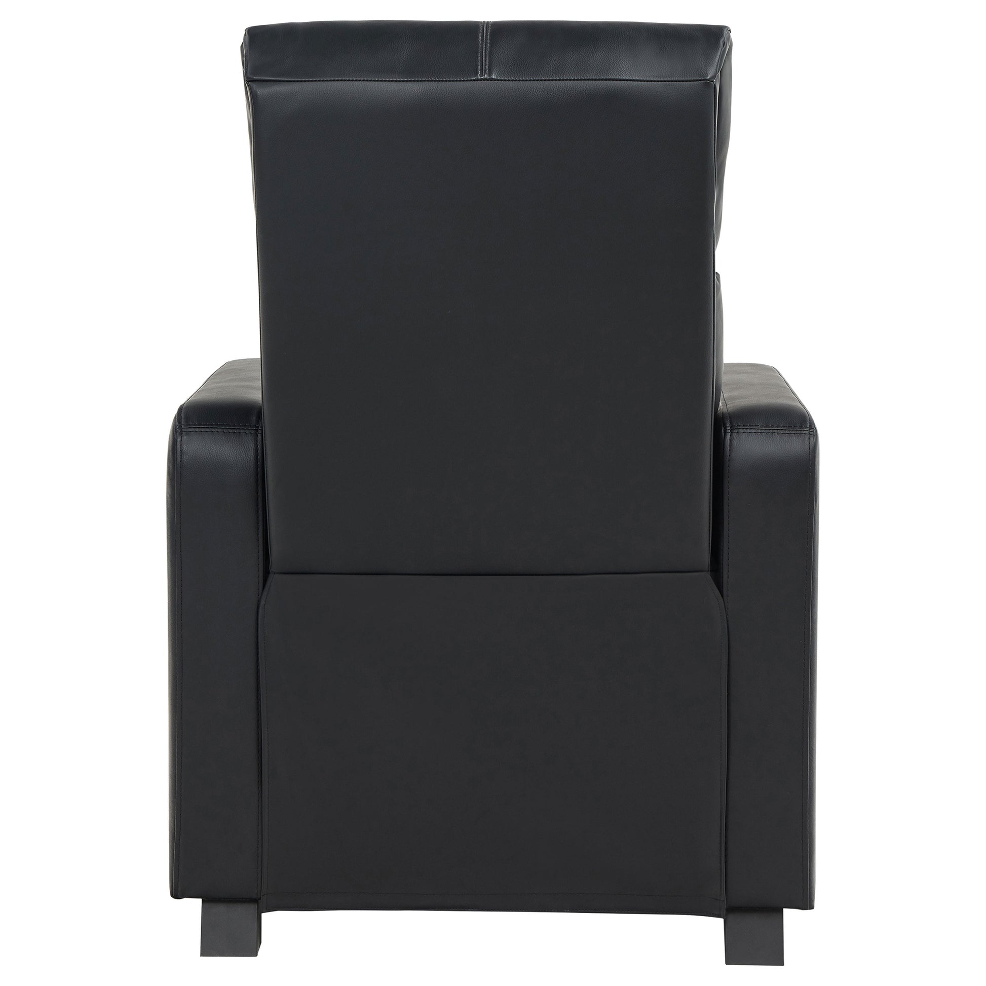 Transform your living room into a cinematic retreat with this modern home theater seating collection. Upholstered in smooth black leatherette, each push back recliner offers plush headrests, supportive armrests, and pocket coil seating with a cool gel memory foam topper for lasting comfort. Removable stainless steel cupholders built into the wedge consoles provide convenience and easy maintenance. Sleek stitching details and a tailored silhouette add contemporary refinement, while sturdy construction ensures durability for years of entertainment.