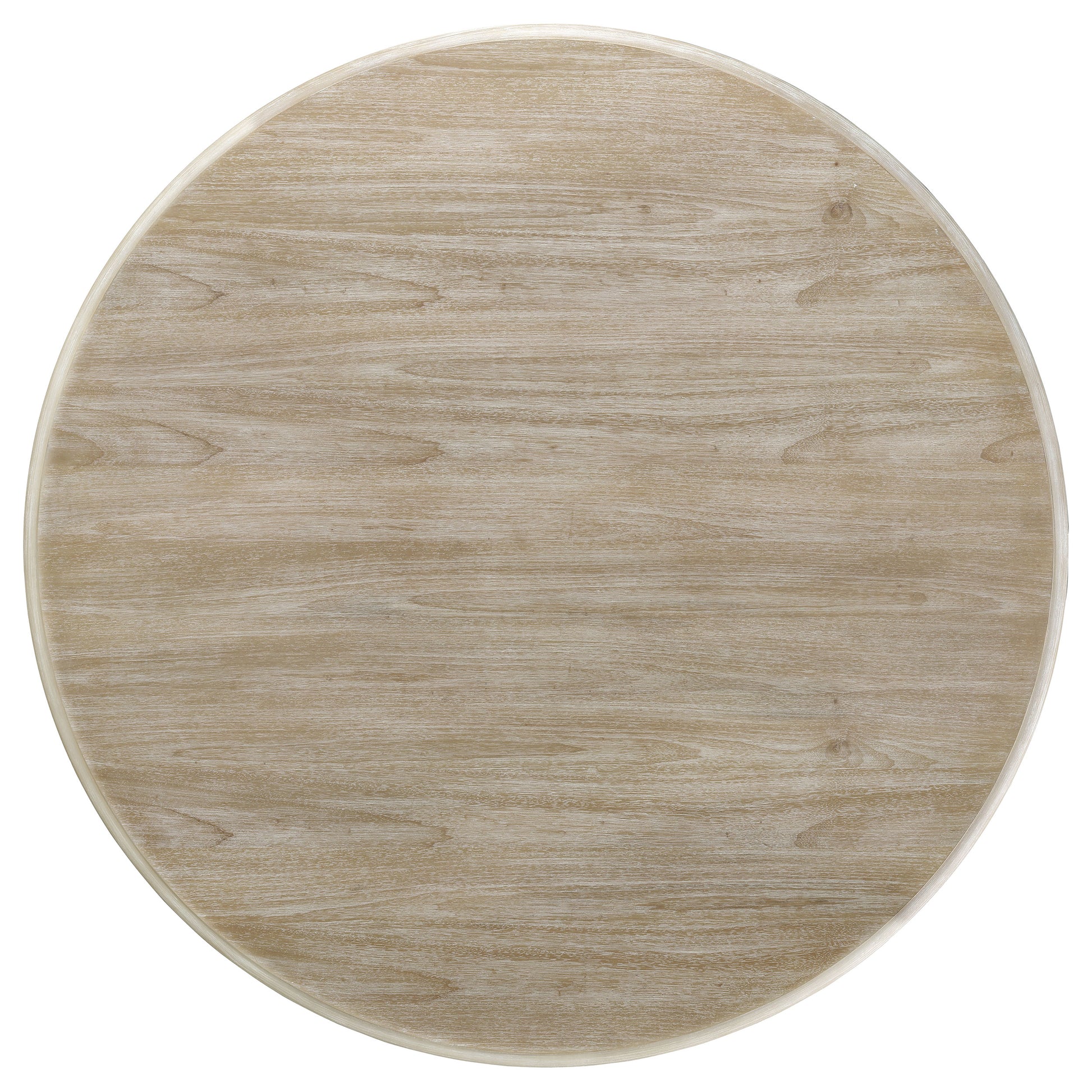 Create a welcoming, warm ambiance for meals with the family with this five-piece modern dining set. A chic blend of contemporary and casual styles, it features wood construction with a wire brushed, whitewashed finish that's light and fresh in a kitchen or dining room. The set features a round table with a distinctive pedestal base that features four curved legs on a round, stepped disc base. Four stylish side chairs accompany the table, featuring plush foam padding and light beige upholstery that complements the wood finish perfectly. Chairs have full, padded backs, perfect for leisurely dining with friends and family.